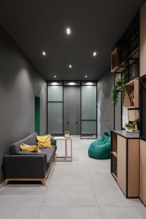 - Общие зоны на 100 кв.м. с дизайнерским ремонтом, включая холл с лаундж зоной и гардероб.