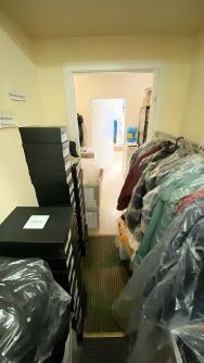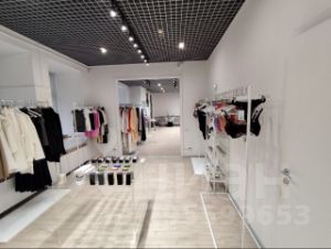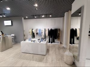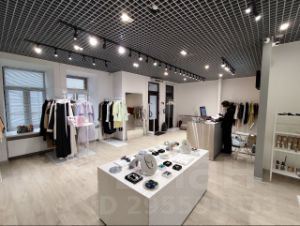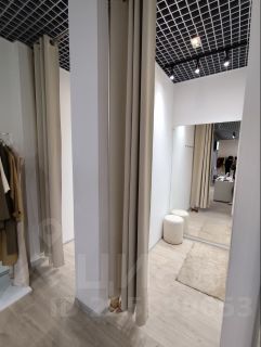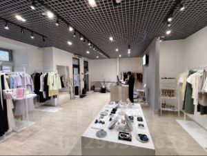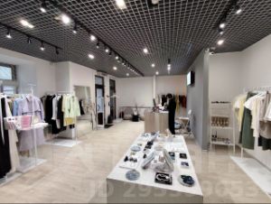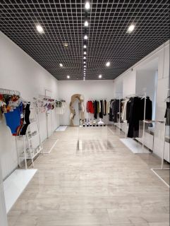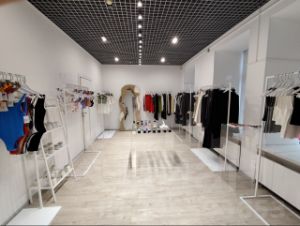 Красивая входная группа, стеллажи, вешалки, мебель, зеркала, примерочные. Установлены декоративные металлические потолки, освещение, стойка администратора новый ламинат.