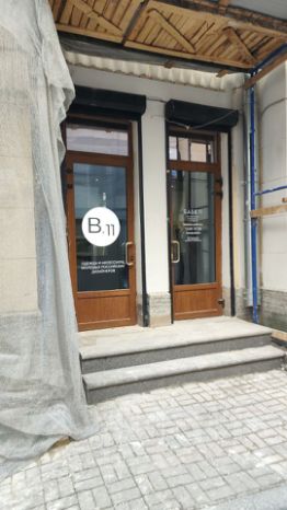Помещение находиться в доме Довлатова с двумя отдельными входами на улице Рубинштейна 23. Расположено в атриуме многоквартирного дома с деревьями и зоной парковки.