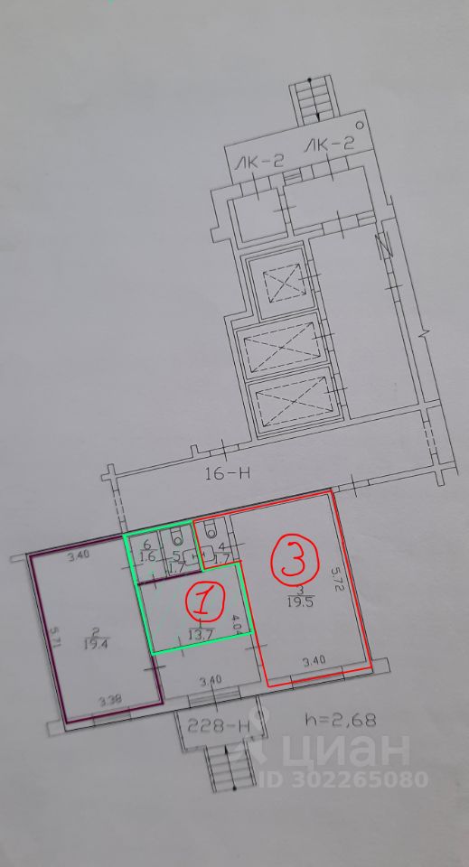 Соседнее помещение 21 кв.м.(пом.3 на плане) сдается, свободное. Можно арендовать оба помещения.