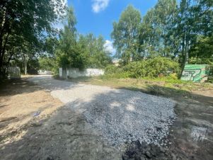 Площадка под теннисный корт площадью 15 соток с обособленным заездом. Стоянка автомобилей, размещение контейнеров, складирование под навесом и складирование на открытой площадке.