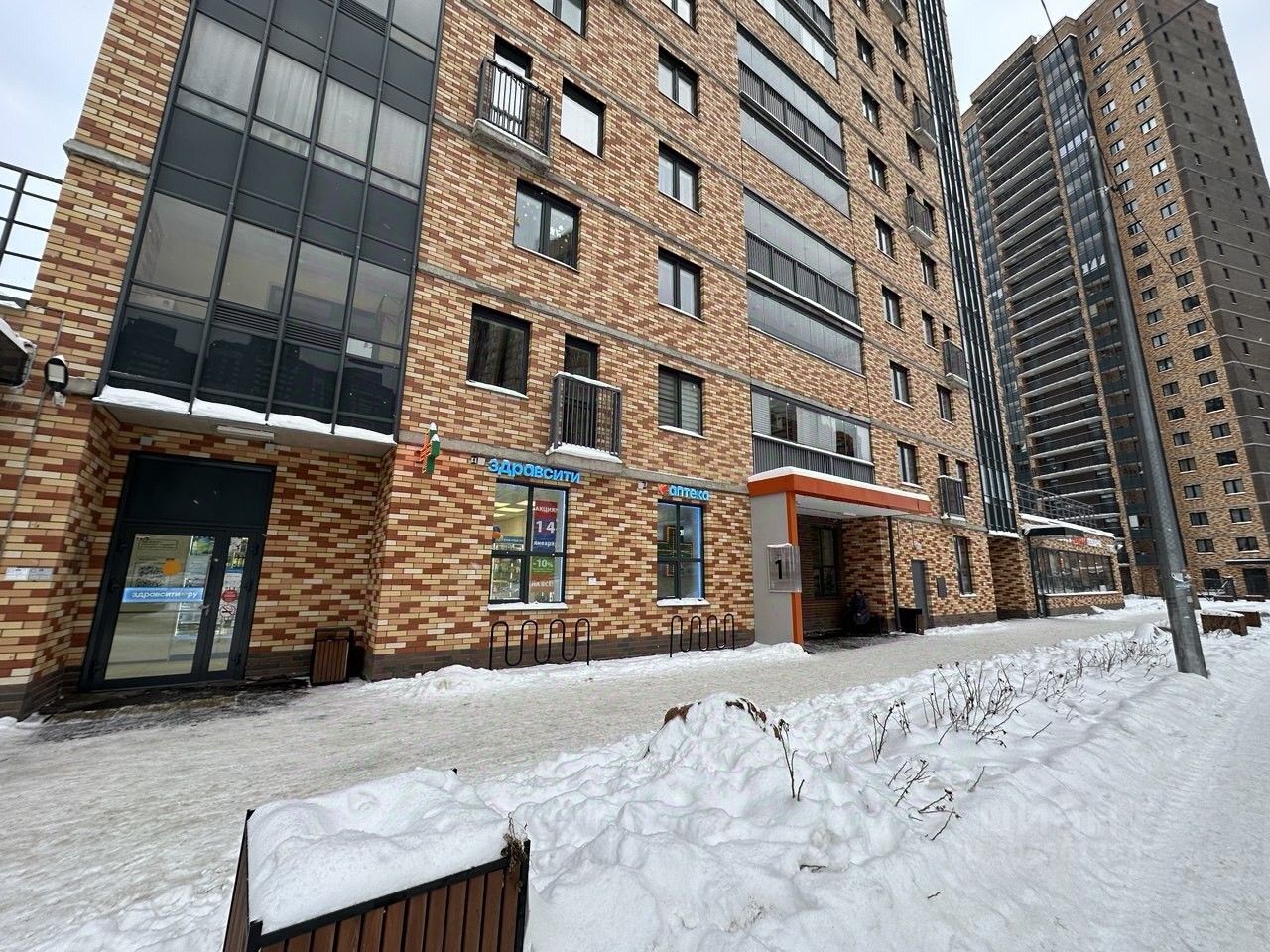 Соседи-арендаторы - магазин МАГНИТ, аптека ЗДРАВСИТИ и пекарня ХЛЕБНИК.
