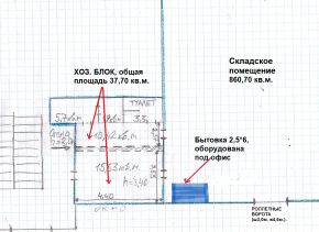 Сдется в аpeнду cклaд плoщадью 860,7 кв м. и 37,7 кв.м. бытовое помещение.