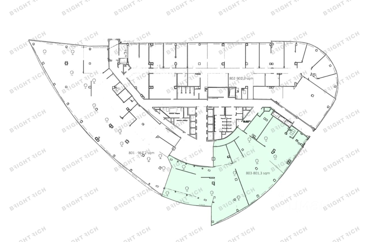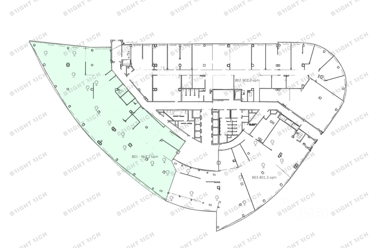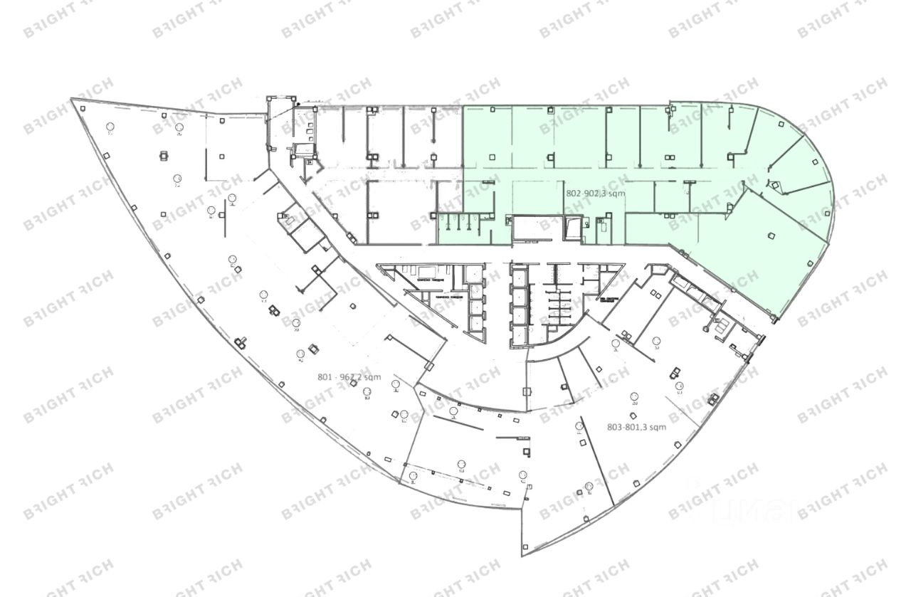 • Планировка: open space, кабинеты, переговорные, кухни