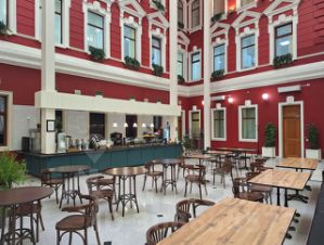 почтовые ящики, услуги ресепшен, в атриуме здания есть кафе (завтраки и обеды).