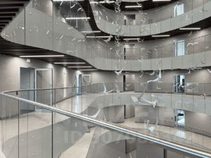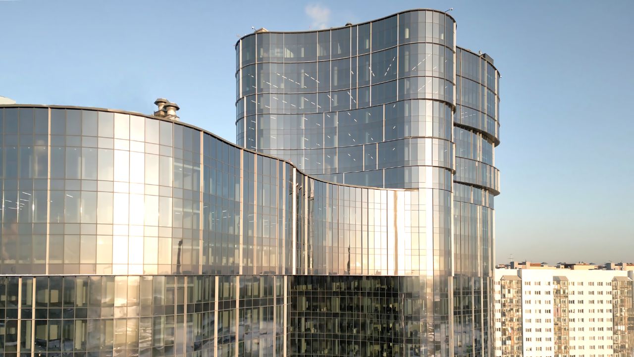 - 2 стеклянных башни (23 и 15 этажей) + малоэтажная секция "нос корабля"