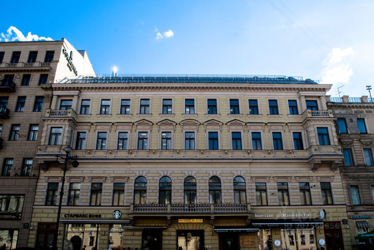 - На территории — кафе, ресторан, а также гостиница Невский Палас и торговая зона -