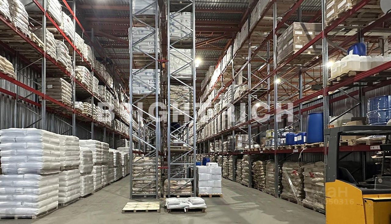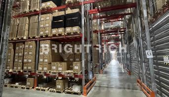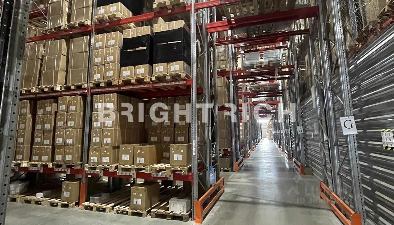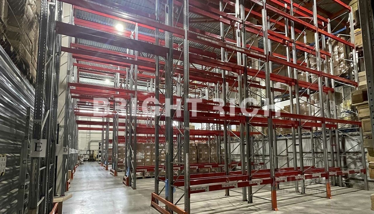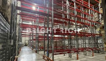 Аренда сухого склада в складском комплексе A-класса. Установлены стеллажи.