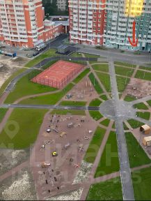 напротив помещения прогулочная зона и рядом вход в паркинг.