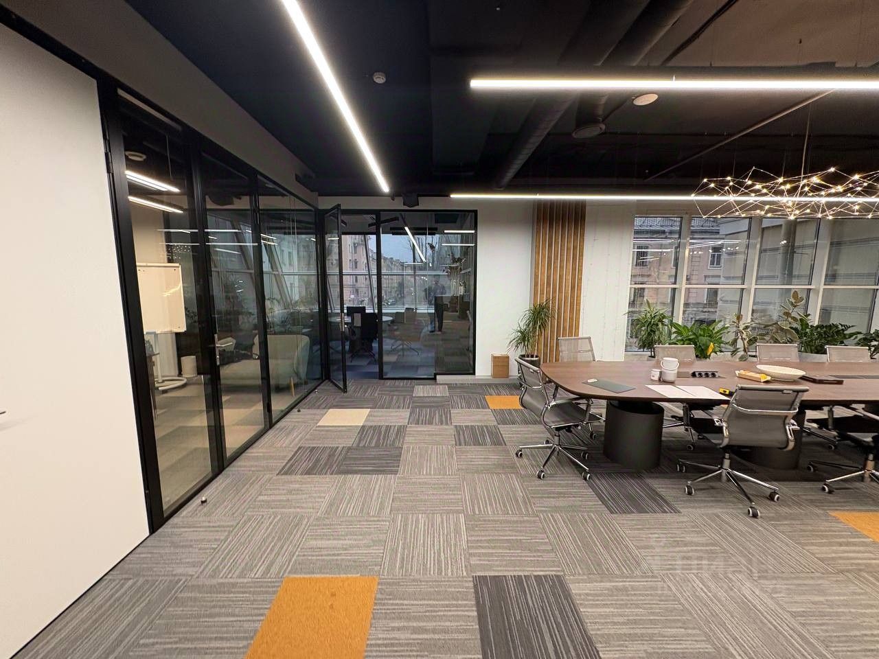 - 1 328,6 м² — кабинеты + open space, переговорная с шумоизоляцией, собственные с/у, 3 этаж. Оборудованных 102 рабочих места