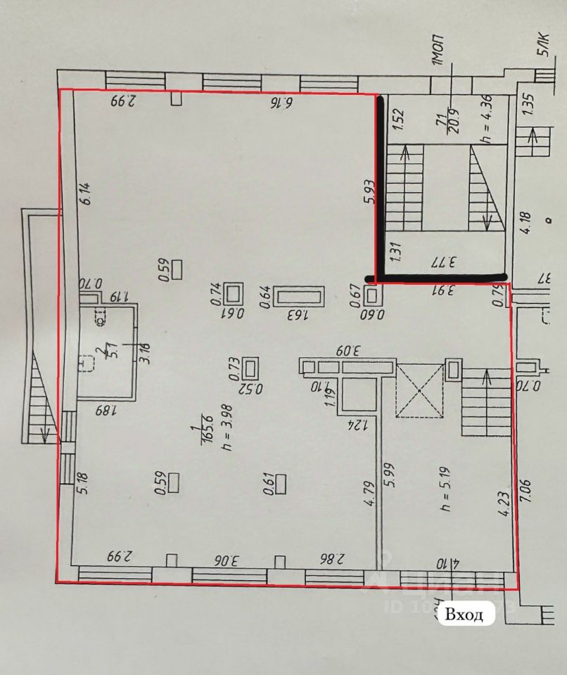 Общaя плoщaдь: 171 кв.м. (Ha плане выделен красным)