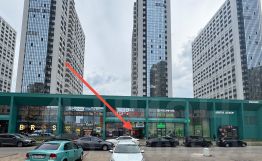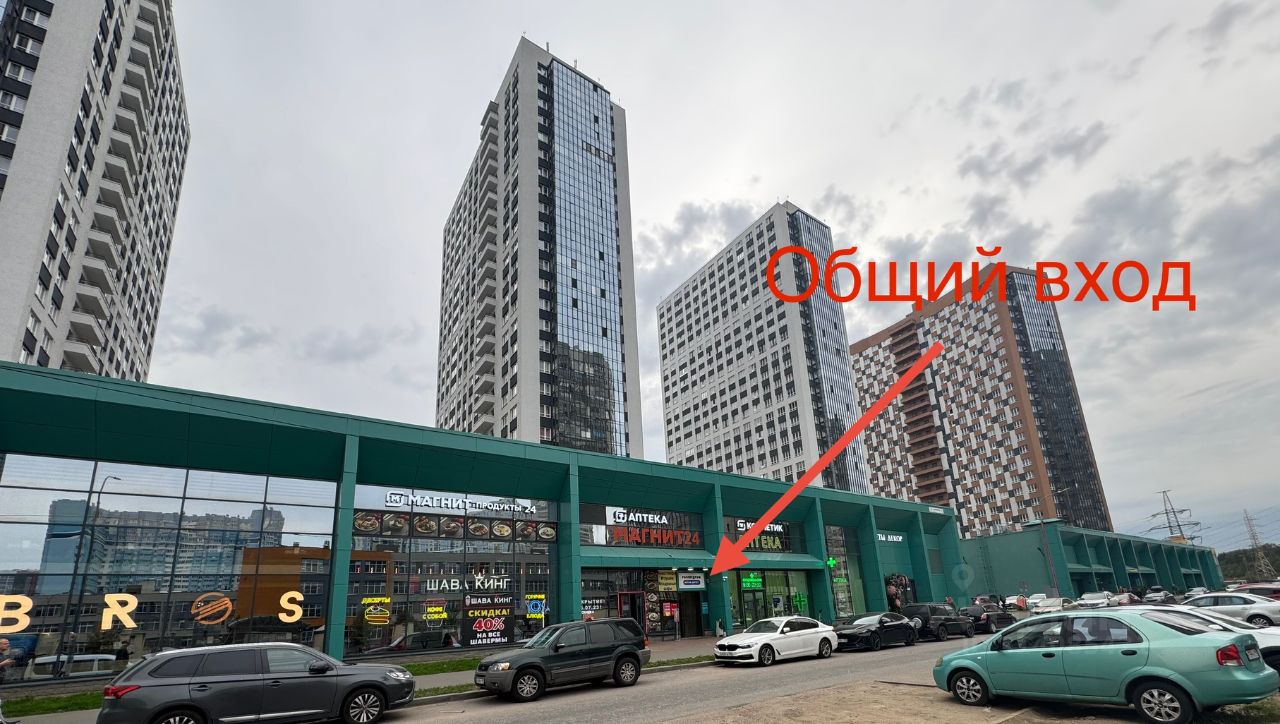 Плотно застроенный район с колоссальным пешеходным и автомобильным трафиком. Общий вход в здание с первой линии.