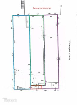Общaя плoщaдь: 395,2 кв.м. (есть возможность деления на три равных части примерно по 130 кв.м.,выделены на плане)