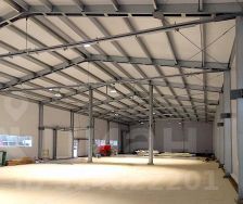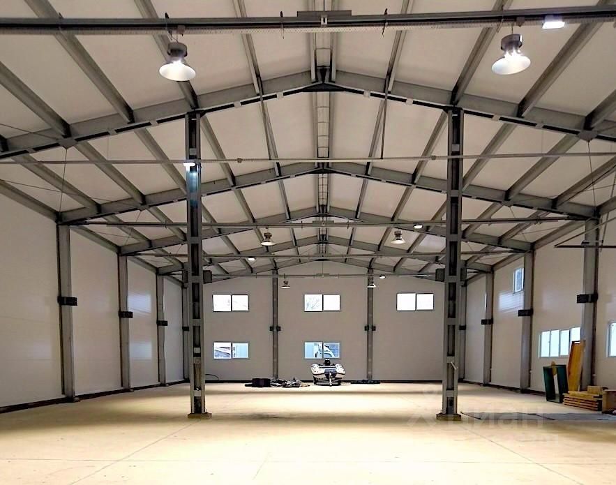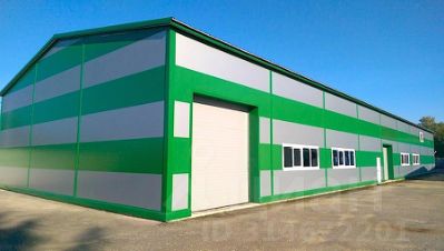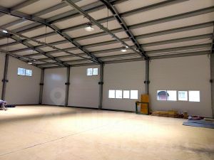 Производственный корпус площадью 970 м² с размерами 18 х 54 м выполнен из сэндвич панелей (стены 120 мм, крыша 150 мм). Высота до нижних балок 6 м. Пол наливной, антипыль. Установлено двое ворот размером 3 х 3 и 4 х 4 м.