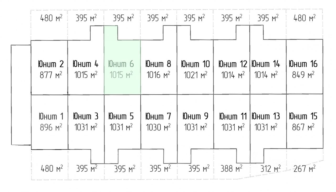 Автономные юниты-секции. Есть возможность установки кран-балки. Комплекс в стадии строительства, готовность к въезду — ноябрь 2025 года.