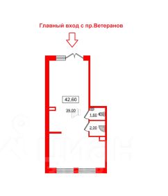 Параметры: 1 этаж, вход с уровня земли, вход с проспекта Ветеранов, несколько витринных окон как на проспект, так и во двор.