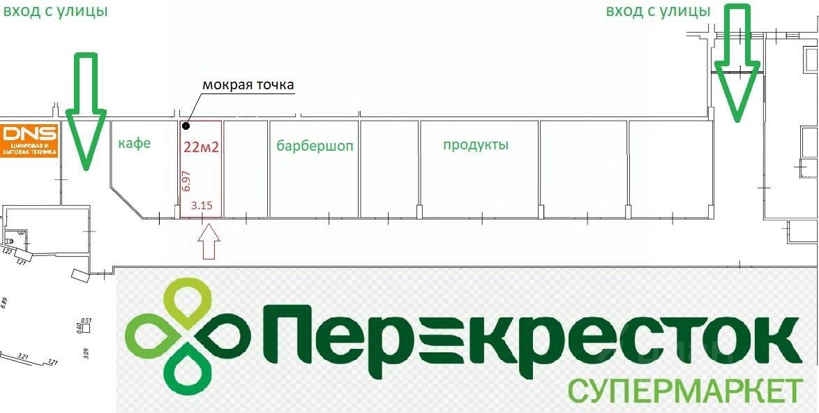 Без комиссии агента! Помещение с мокрой точкой в торговой галерее.