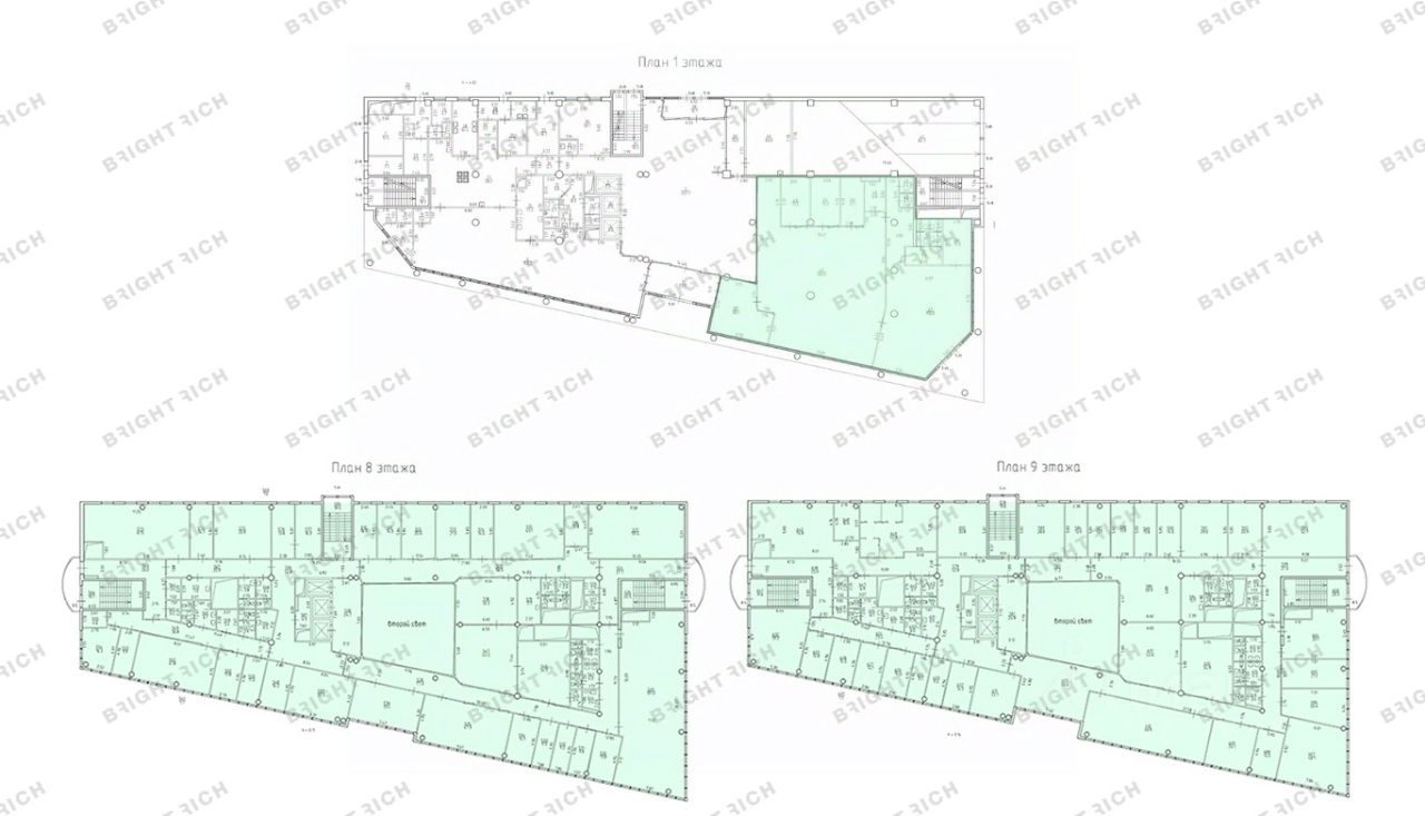 Планировка — смешанная: open space, кабинеты, кухня и санузлы. Офисы с современным ремонтом, готовы к въезду. Помещения светлые, с панорамными окнами.
