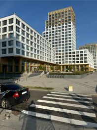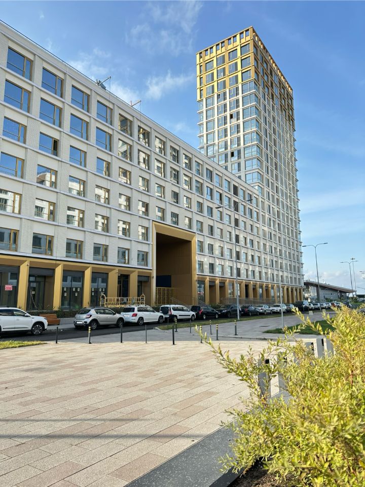 Развитая инфраструктура: кафе, магазины, стоматологические клиники, аптеки; Остановка общественного транспорта — напротив;