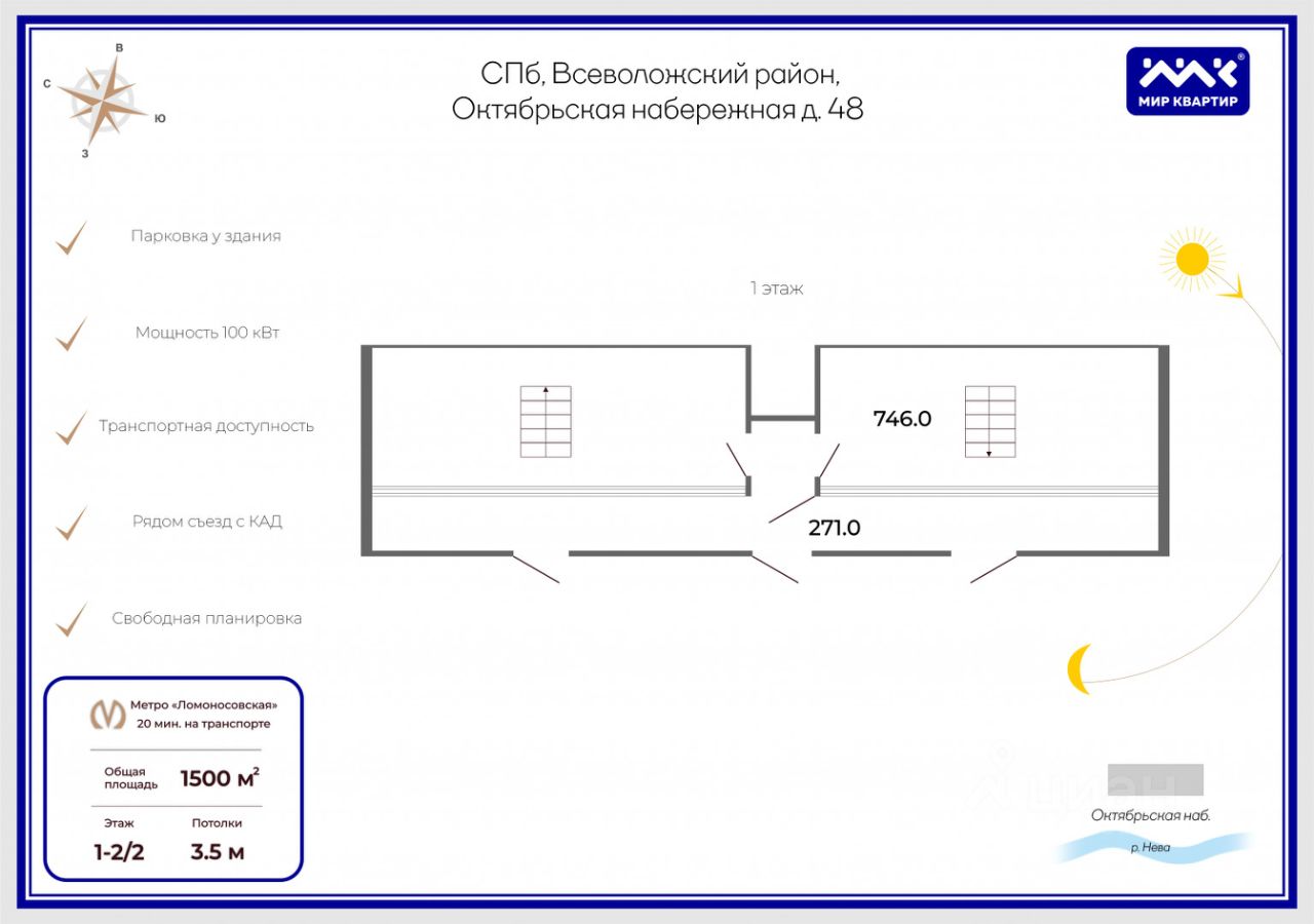 Отличная транспортная доступность объекта - рядом выезд на КАД, Октябрьская набережная и Володарский мост на левый берег Невы !!