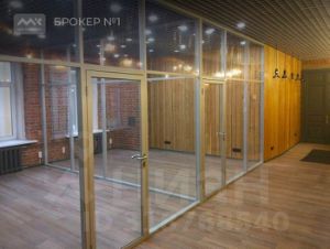 В помещении есть несколько санузлов, душ, кухонная зона с посудомоечной машиной, несколько выделенных зон для переговоров (стеклянные перегородки).