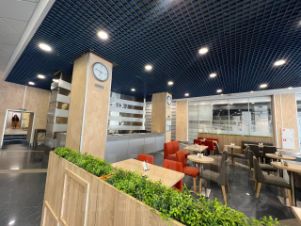 - Инфраструктура: столовая, кофейня, банкоматы на территории. В шаговой доступности — супермаркеты и кафе