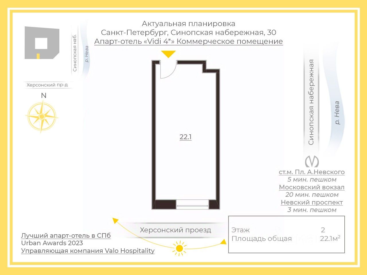 Арт. 106638037 Представляем вашему вниманию уникальное помещение свободного назначения общей площадью 22,1 кв.м в апарт-отеле Vidi в самом сердце Санкт-Петербурга!