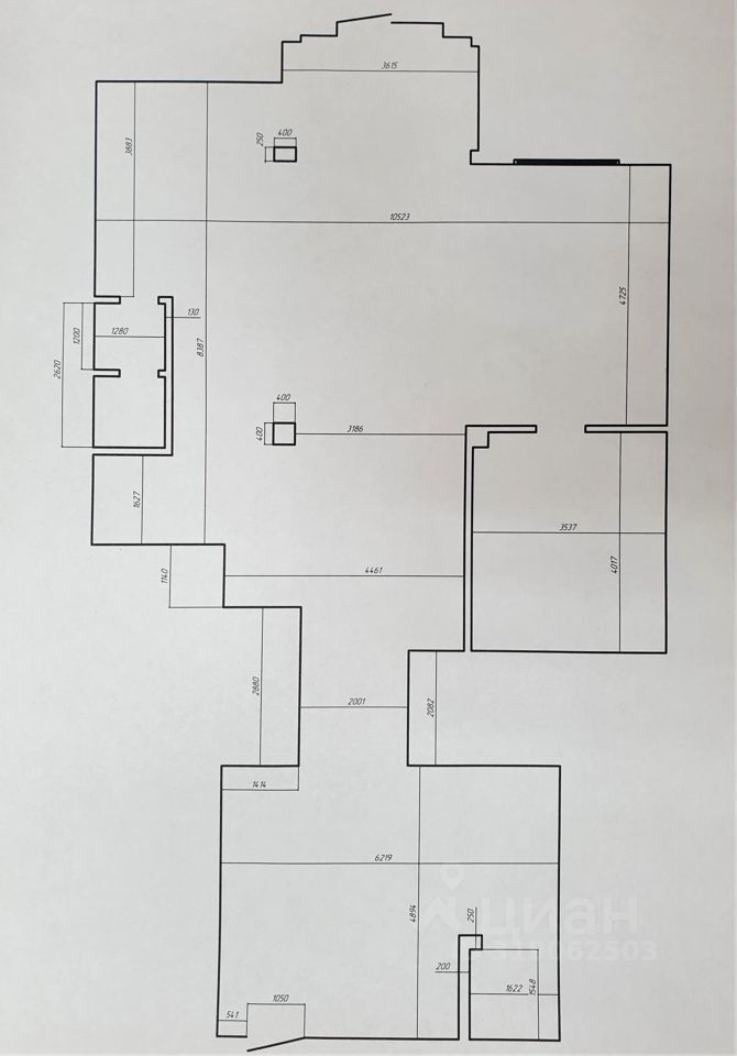 Просторный зал с высотой потолков 3,60 м и двумя мокрыми зонами готов к вашему проекту.