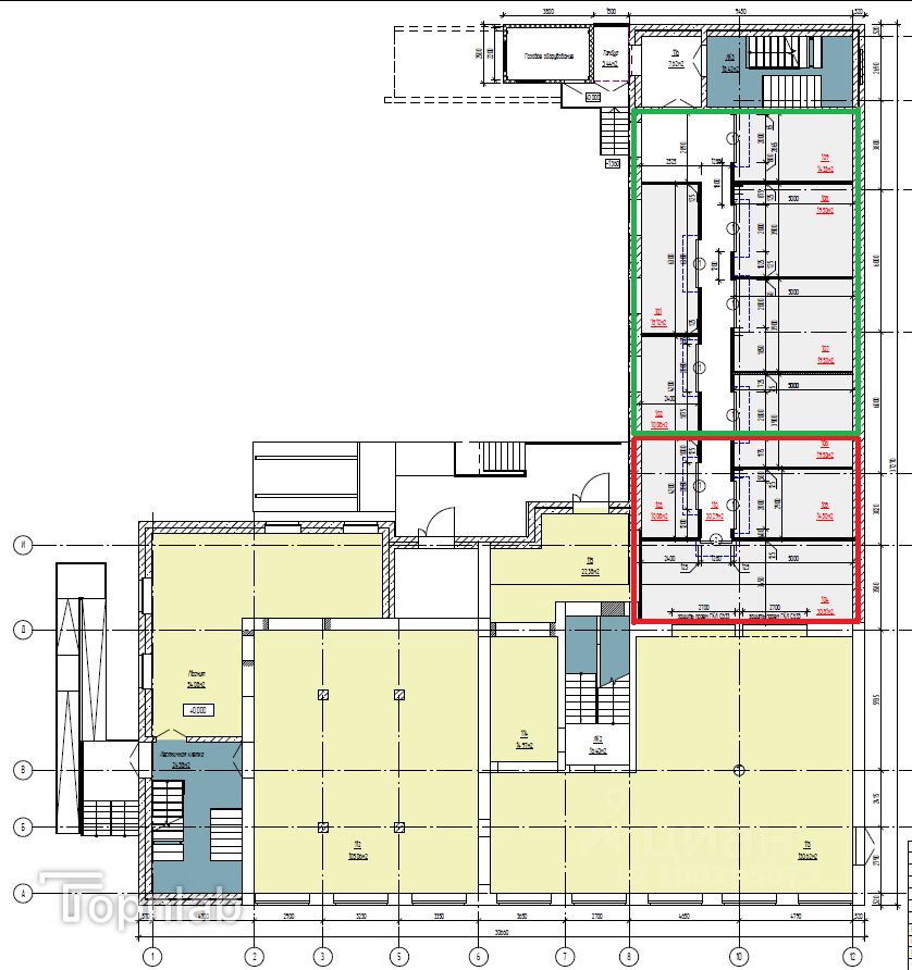 Общая плoщадь: 136 кв.м. (На плане красная и зеленая зоны вместе).