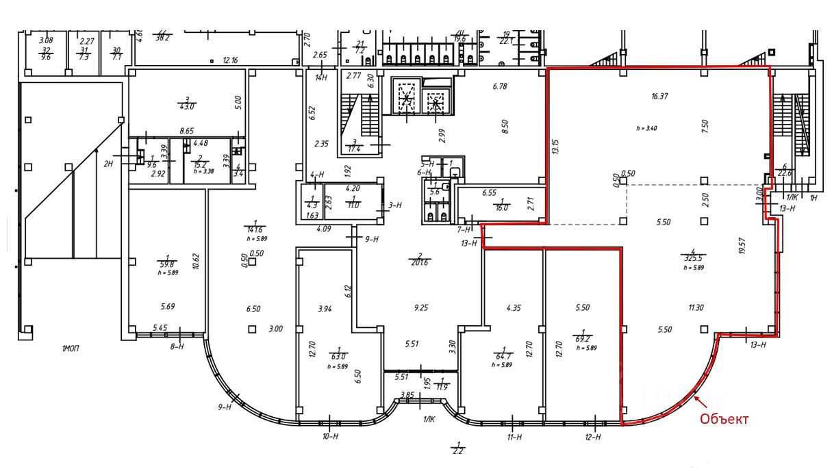Высота потолков: 5,89 м (частично - 3,4 м)