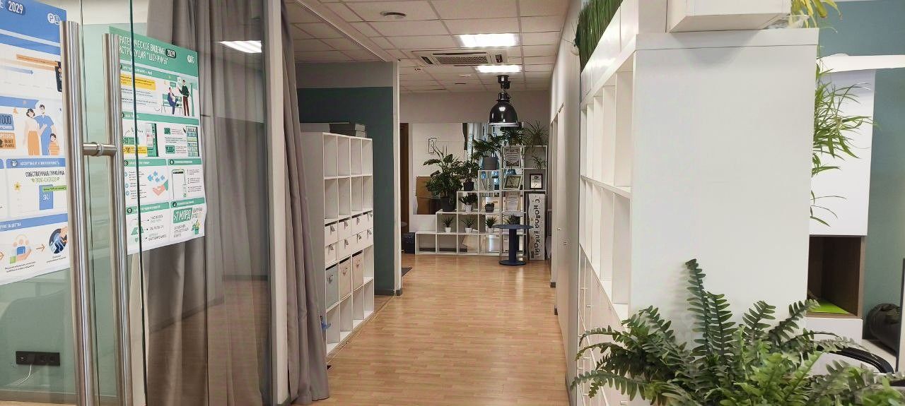 В офисе расположены 2 переговорные комнаты: видовая с мягкими диванами и переговорная закрытого типа с проектором.