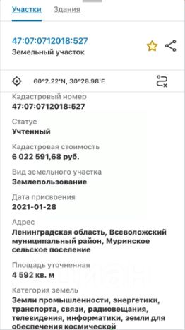 Кадастровый номер : 47:07:0712018:527