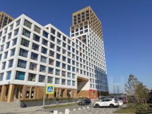 Помещение имеет визуально обособленный вход с фасада. К помещению примыкает большая парковка.