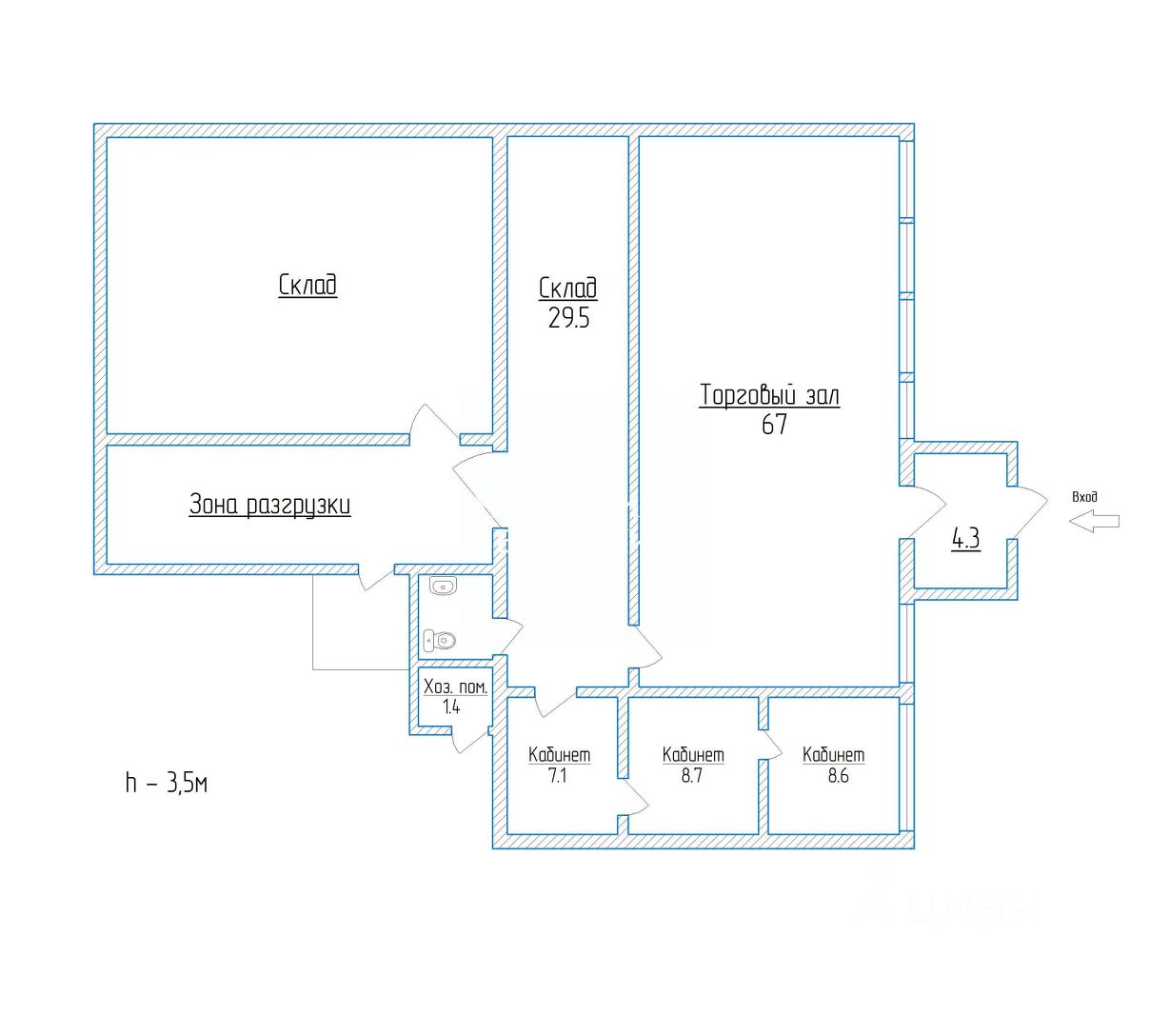 Помещение площадью 215 м.кв, с большим торговым залом, складом, удобной зоной погрузки / разгрузки товара, санузлом и кабинетами.