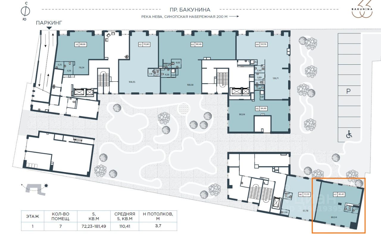 Высокий автомобильный и пешеходный трафик по Бакунина, рядом ЖК, БЦ и апарт отель бизнес-класса.