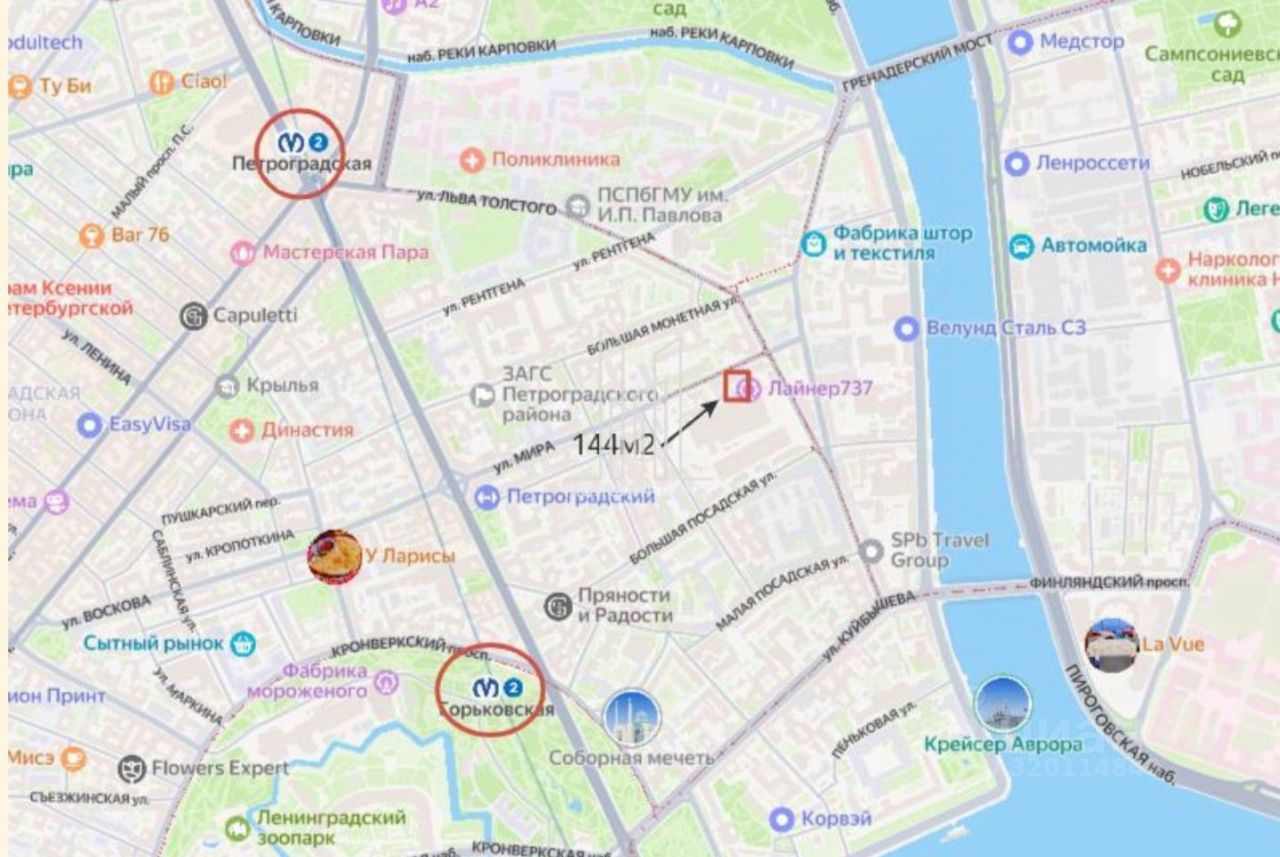 Густонаселённый жилой район. Помещение находится в здании рядом (примыкает) с новом ЖК "Мироздание". По соседству небольшой магазин продуктов 24 часа, Ароматный мир, кофейня, винный бутик. Отличная пешеходная и транспортная доступность, до ст. метро Петроградская и Горьковская примерно 10-15 минут спокойной ходьбы. Недалеко расположены остановки общественного транспорта. Возможное использование продуктовый магазин, салон красоты, офис оказания услуг, массажный салон, шоурум, творчество и т.д.