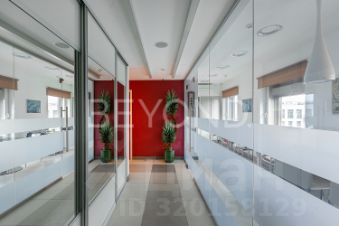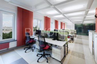 Благодаря двухсторонней планировке (по девять окон на каждую сторону) из окон офиса открывается панорама в сторону водной глади реки Невы и Смольного в окружении зелени парка. На общей площади 289 кв.м размещены 5 изолированных кабинетов, общее рабочее пространство (около 100 кв. м), переговорная комната со стеклами-блэкаутами для проведения конфиденциальных совещаний, три санузла (в т.ч. с комфортной душевой), комната отдыха персонала с кухней, ресепшн с приемной комнатой ожидания и серверная. Размещение на последнем этаже также открывает возможную опцию использования эксплуатируемой крыши над резиденцией в качестве открытой террасы (дополнительно около 300 кв. м). Придомовая территория комплекса находится под видеонаблюдением, профессиональная охрана. В наличии также три парковочных места в аренду в подземном отапливаемом паркинге.