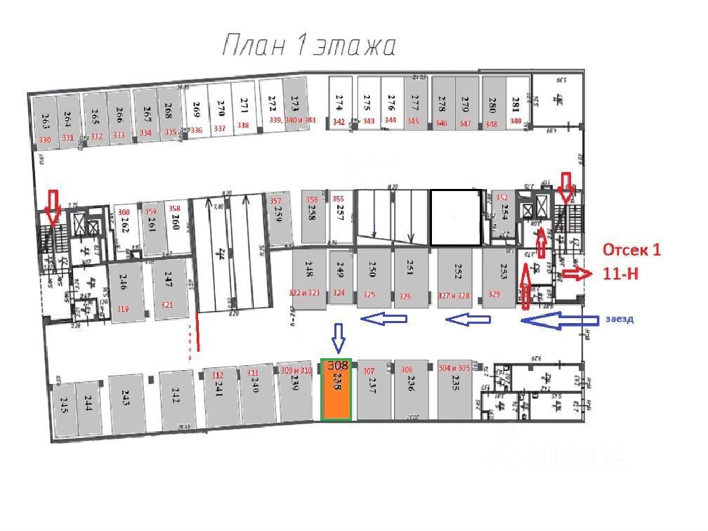 Первый этаж, очень удобно, недалеко от въезда, лифта, выхода. Комфортный въезд-выезд, Отсек 1, ближе к Головнина. Легко с коляской - для мам и маломобильных граждан - ступеней, лестниц нет.