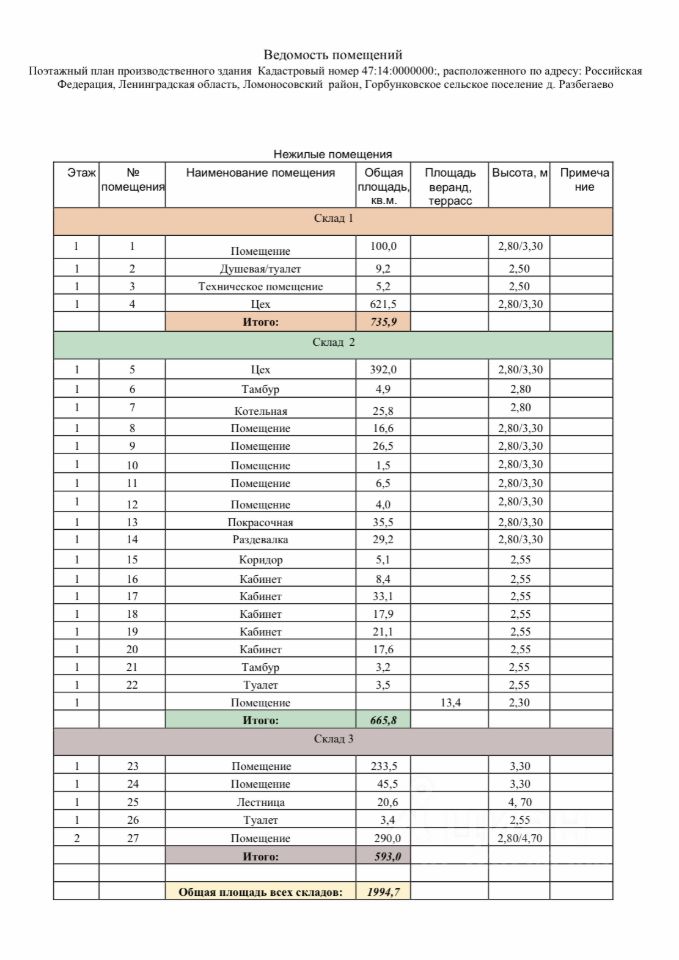 - Склад 1 и 2: общая площадь 1414,7 м²