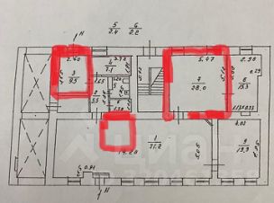 Общая площадь 28 кв.м. Справа вверху на плане, выделено красным.