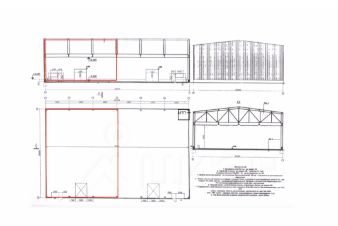 - Без колонн, две подъемно-секционные ворота размером 3x3 м