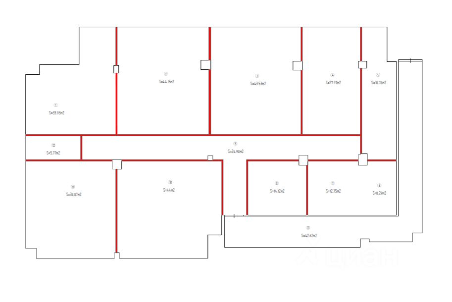 В ближайшее время будет сделана нарезка помещений, как указано на планировке.