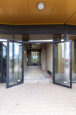 Витринные окна выходят, как на улицу, так и внутрь двора дома.