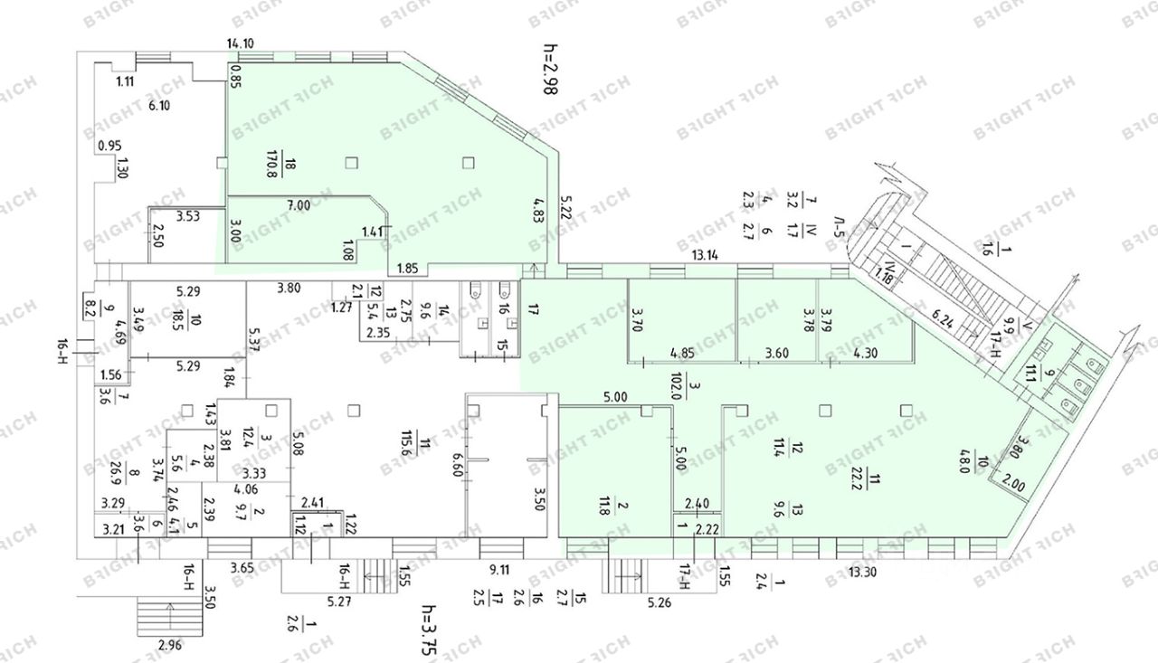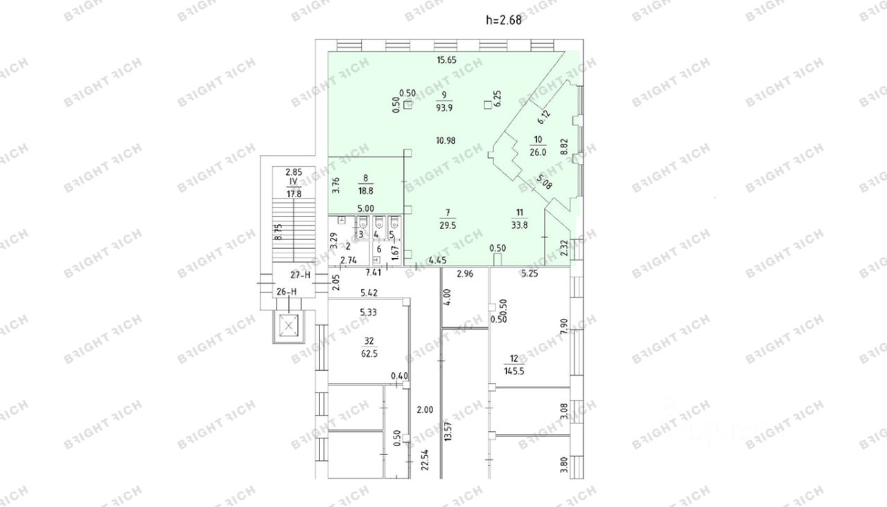• 364 м² — 1 этаж, отдельный вход, смешанная планировка (open space + кабинеты), группа санузлов;