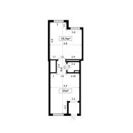 По планировке: Вытянутое помещение на две стороны дома, разграниченное санузлом.