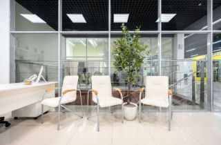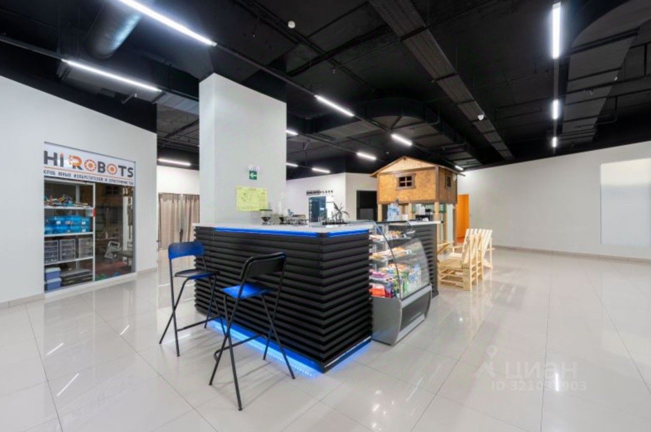 В помещении панорамные окна, есть возможность зонирования пространства.