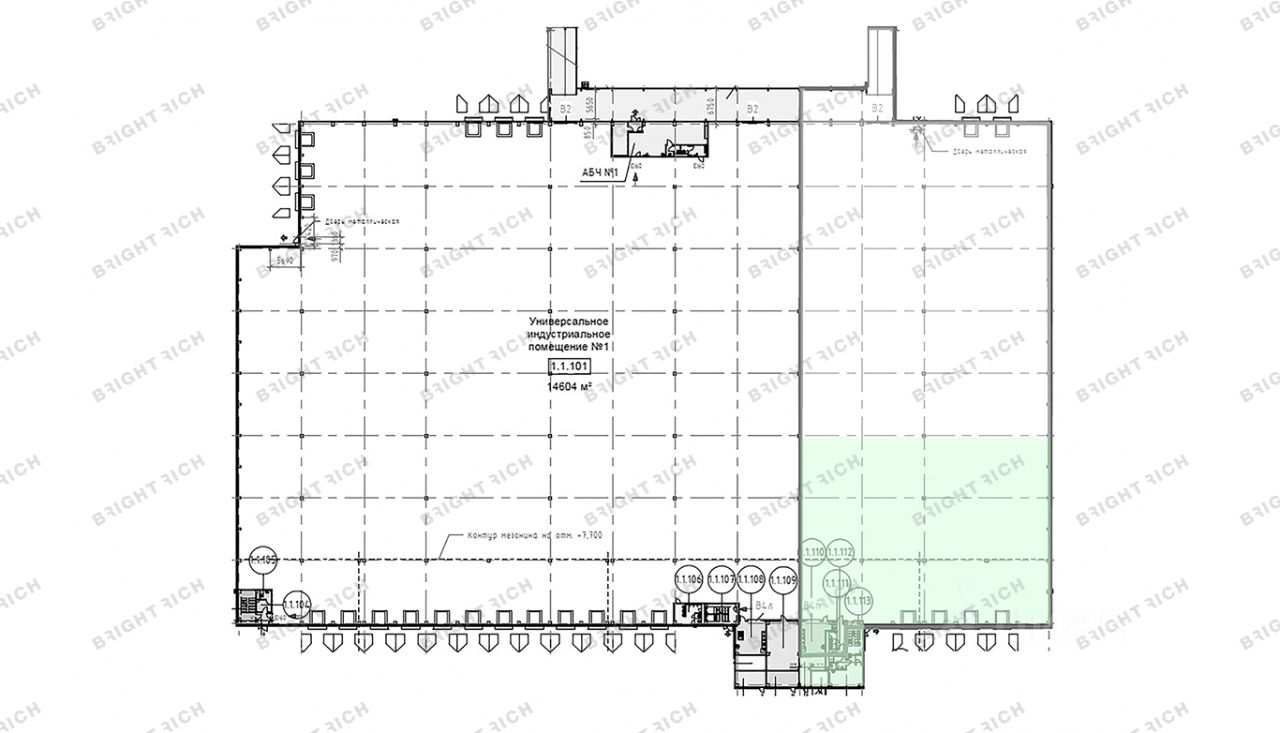 Общая площадь 3 924,3 м², из них: 3 456 м² склад, 235,3 м² офис, 233 м² мезонин.