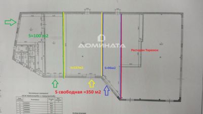 В аренду напрямую от собственника предлагается торговая площадь 157 м2 - часть полностью нежилого одноэтажного ОСЗ, расположенного на первой линии в самом центре г.Всеволожска. На плане отмечена жёлтым контуром. Открытая планировка, отдельный фасадный вход, отдельный с/у, высота потолков 6м, все необходимые коммуникации, электрические мощности до 50 кВт, есть небольшая парковка, зона для разгрузки, место под вывеску на фасаде. Рассматриваем арендаторов любой сферы бизнеса. Выгодное месторасположение объекта в окружении большого жилого массива, хороший пешеходный трафик и наличие по соседству сильных центров притяжения обеспечат успех любому бизнесу. Часть здания, в котором расположено помещение занимает Ресторан Теремок. Буду рада ответить на Ваши вопросы, организовать просмотр.