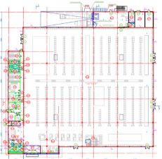Само здание обеспечено всем необходимым для качественной и бесперебойной работы. Просторный зал с оптимальным шагом колонн: 1218 м (продольный и поперечный) и высотой до ферм 4,3 м, до кровли — 6,3 м. Ровный обеспыленный пол с нагрузкой до 800 кг на м², электричество с максимальной нагрузкой до 500 кВт.
