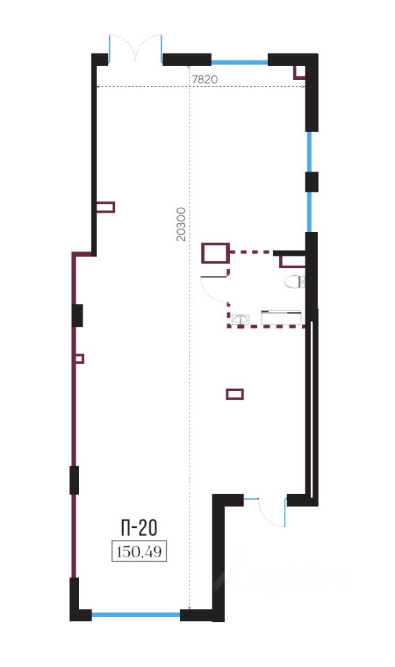 Панорамные витрины, высокий потолок, возможность зонирования.